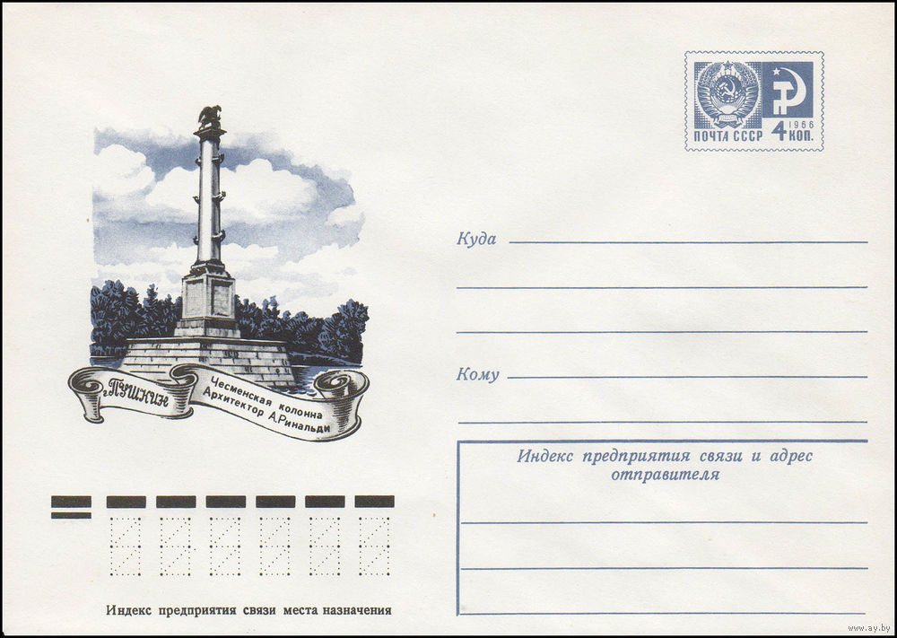 Художественный маркированный конверт СССР N 11190 (17.03.1976) г. Пушкин. Чесменская колонна Архитектор А. Ринальди
