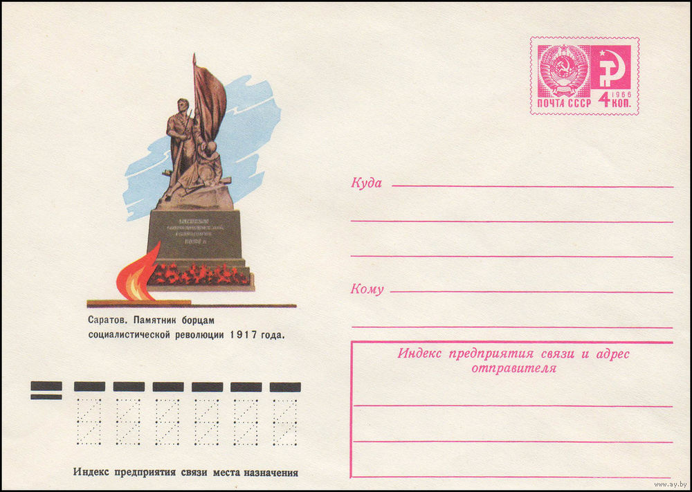 Художественный маркированный конверт СССР N 11256 (16.04.1976) Саратов. Памятник борцам социалистической революции 1917 года.