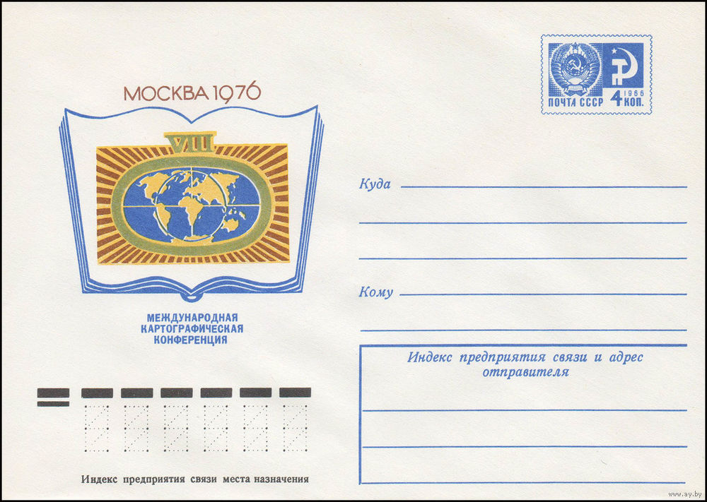 Художественный маркированный конверт СССР N 11368 (03.06.1976) VIII Международная картографическая конференция Москва 1976