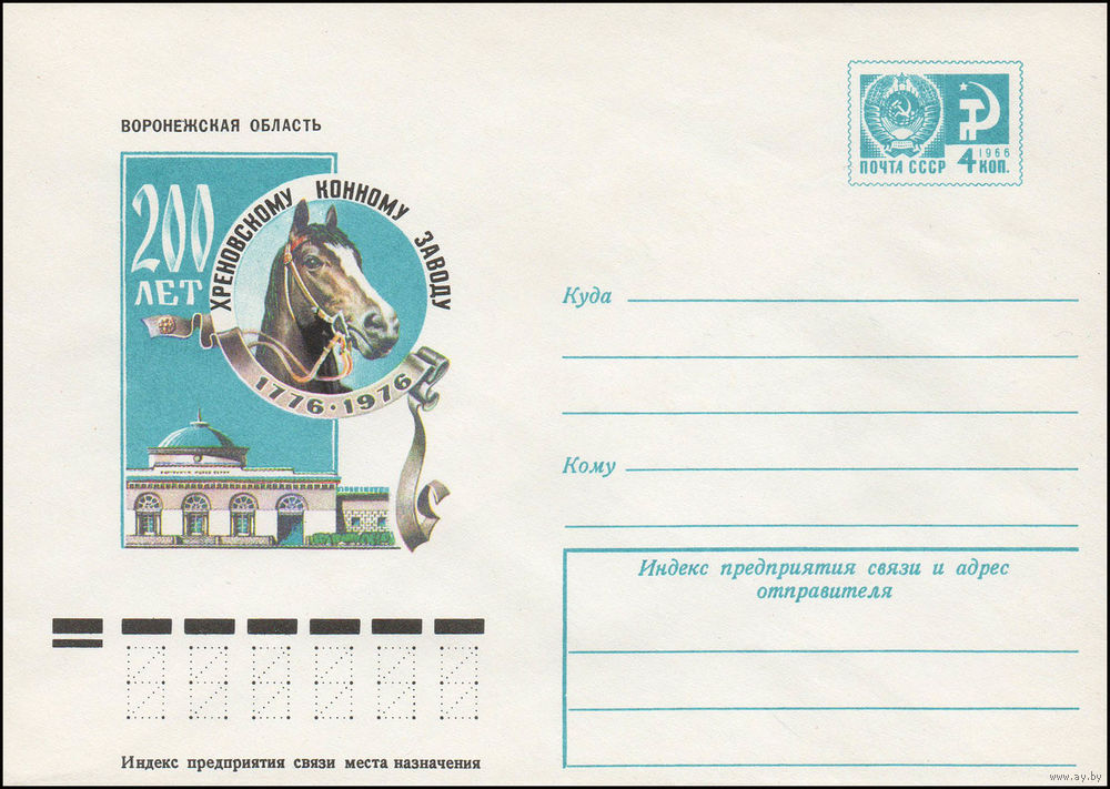 Художественный маркированный конверт СССР N 11414 (28.06.1976) Воронежская область 200 лет Хреновскому конному заводу 1776-1976