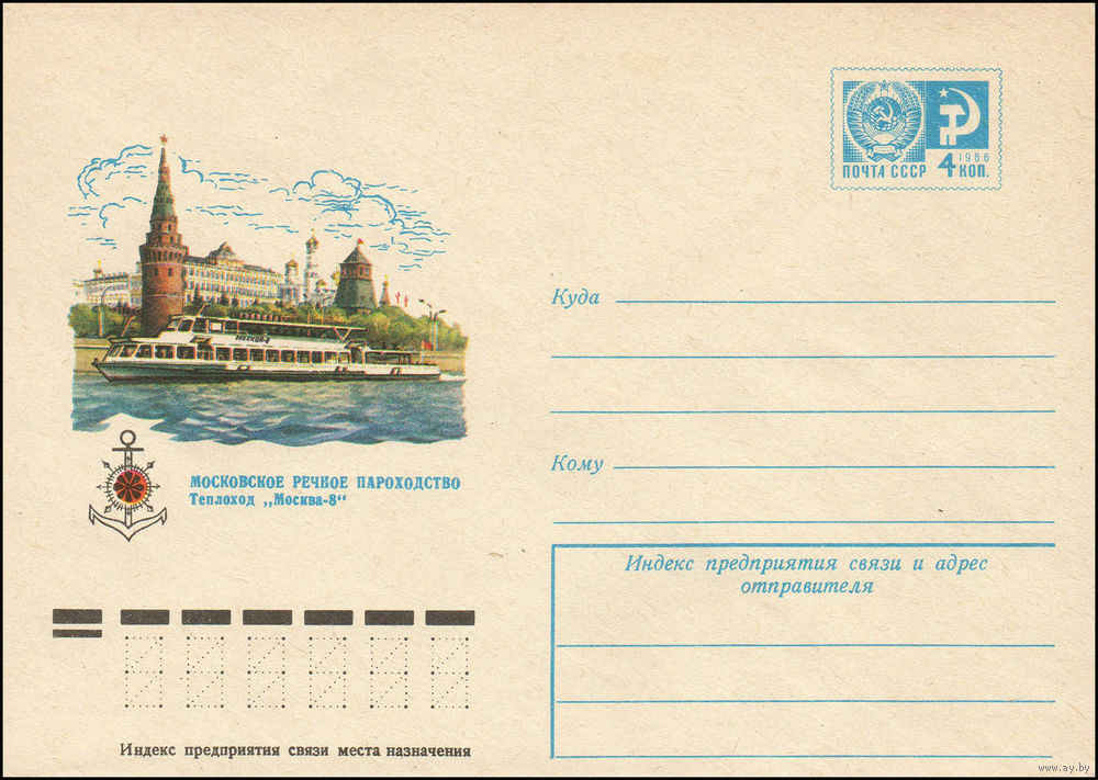 Художественный маркированный конверт СССР N 11433 (07.07.1976) Московское речное пароходство Теплоход "Москва-8"