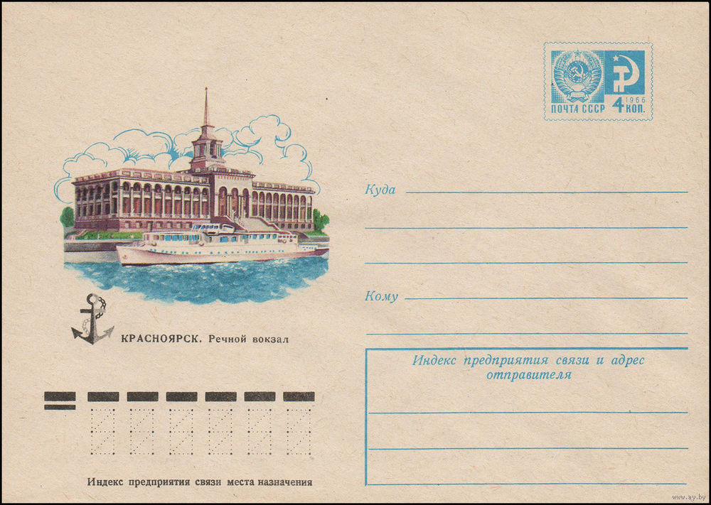 Художественный маркированный конверт СССР N 11490 (03.08.1976) Красноярск. Речной вокзал