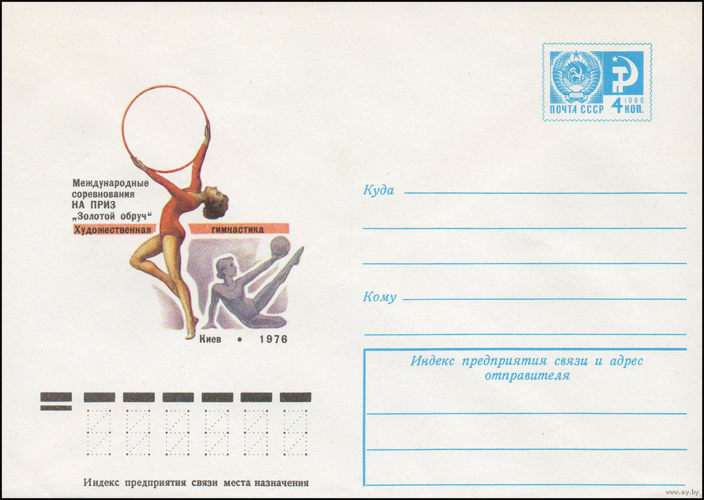 Художественный маркированный конверт СССР N 11495 (03.08.1976) Художественная гимнастика Международные соревнования на приз "Золотой обруч" Киев 1976