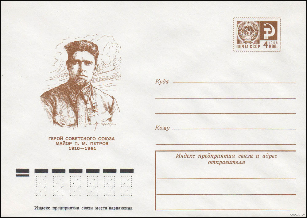 Художественный маркированный конверт СССР N 11763 (15.12.1976) Герой Советского Союза майор П.М. Петров 1910-1941