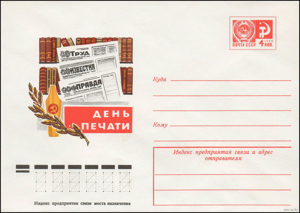 Художественный маркированный конверт СССР N 11774 (22.12.1976) День печати