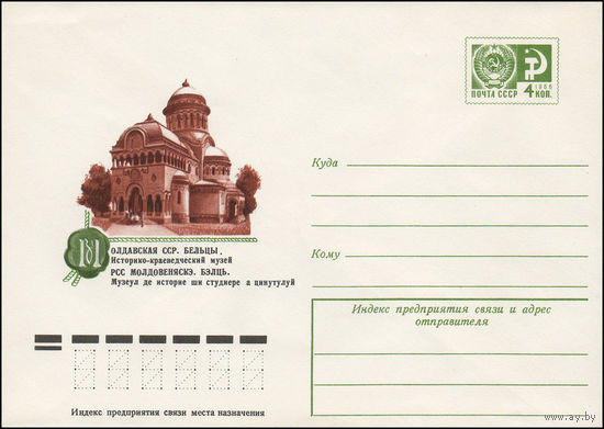 Художественный маркированный конверт СССР N 11797 (05.01.1977) Молдавская ССР. Бельцы. Историко-краеведческий музей