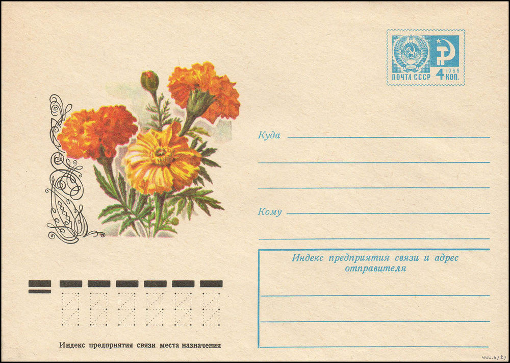 Художественный маркированный конверт СССР N 11868 (10.02.1977) Бархатцы