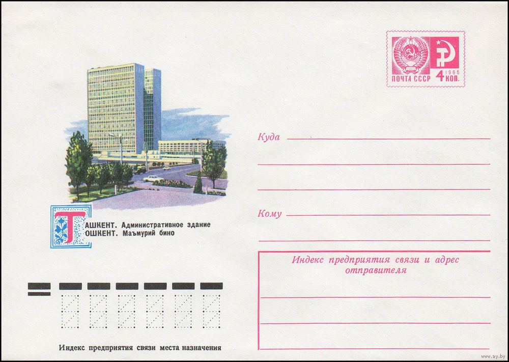 Художественный маркированный конверт СССР N 12011 (18.04.1977) Ташкент. Административное здание