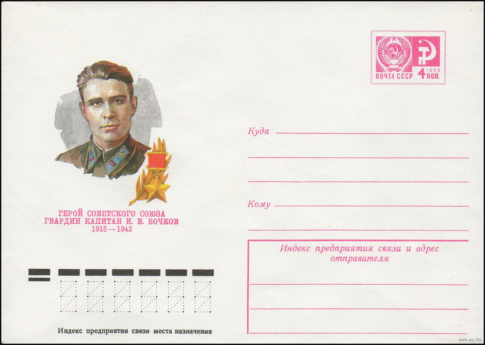 Художественный маркированный конверт СССР N 12031 (04.05.1977) Герой Советского Союза гвардии капитан И.В. Бочков 1915-1943