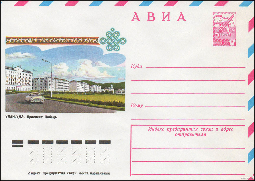 Художественный маркированный конверт СССР N 12057 (11.05.1977) АВИА Улан-Удэ. Проспект Победы