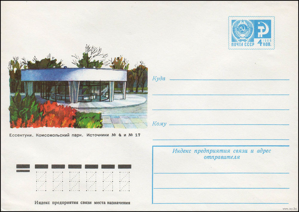 Художественный маркированный конверт СССР N 12067 (18.05.1977) Ессентуки. Комсомольский парк. Источники N 4 и N 17