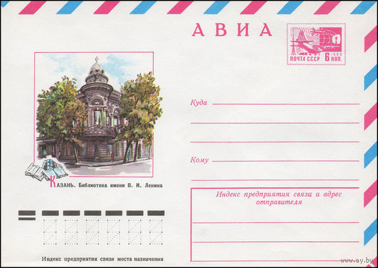 Художественный маркированный конверт СССР N 12092 (25.05.1977) АВИА Казань. Библиотека им. В.И. Ленина