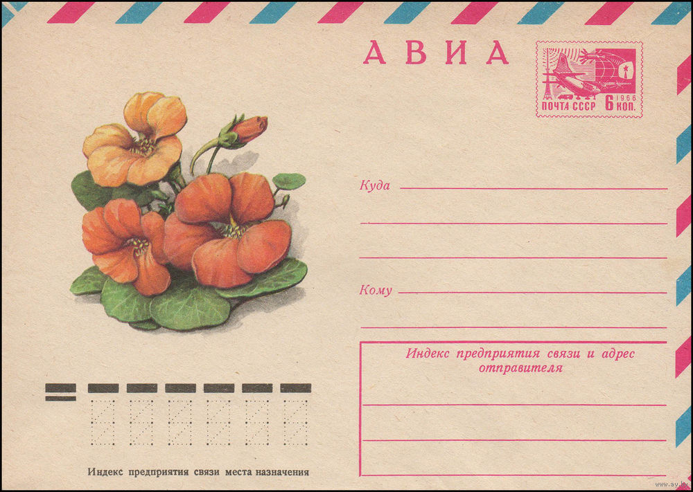 Художественный маркированный конверт СССР N 12105 (27.05.1977) АВИА Настурция