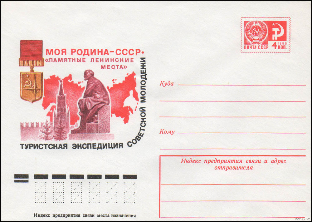 Художественный маркированный конверт СССР N 12110 (30.05.1977) Моя Родина - СССР Туристская экспедиция советской молодежи "Памятные ленинские места"