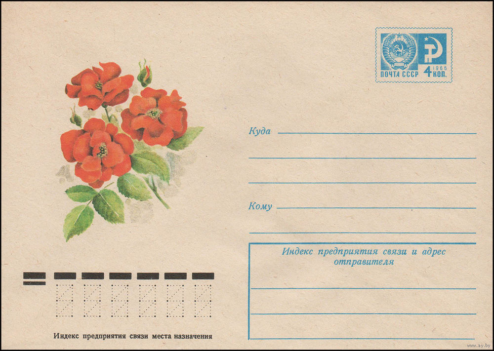 Художественный маркированный конверт СССР N 12168 (15.06.1977) Роза "Паприка"