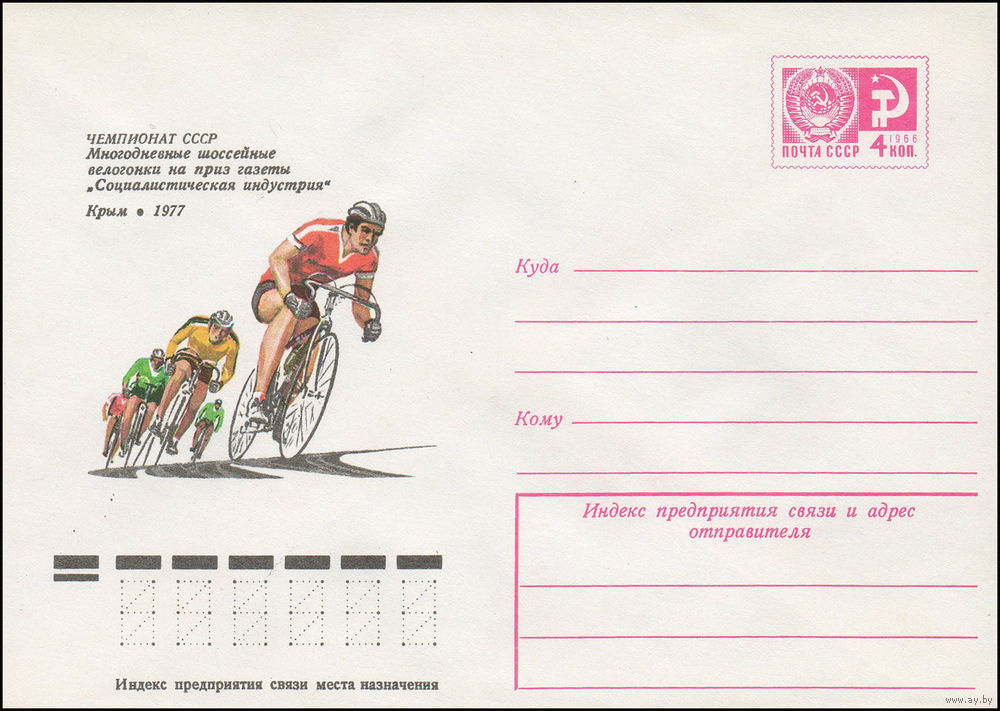 Художественный маркированный конверт СССР N 12268 (02.08.1977) Чемпионат СССР Многодневные шоссейные велогонки на приз газеты "Социалистическая индустрия" Крым 1977