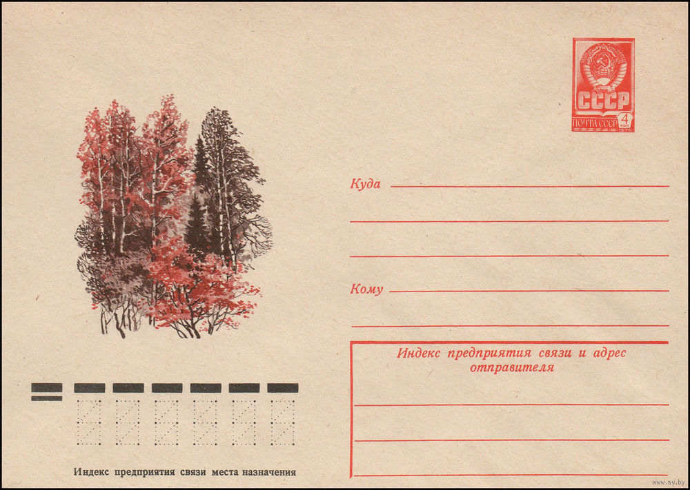 Художественный маркированный конверт СССР N 12277 (02.08.1977) Осенний лесной пейзаж