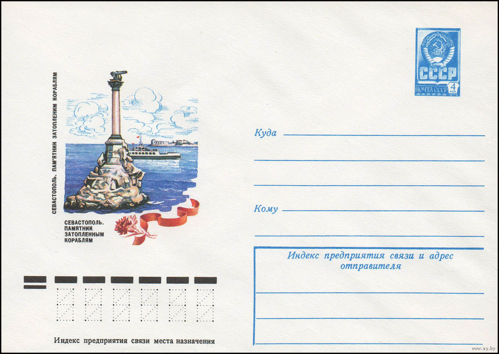 Художественный маркированный конверт СССР N 12365 (13.09.1977) Севастополь. Памятник затопленным кораблям