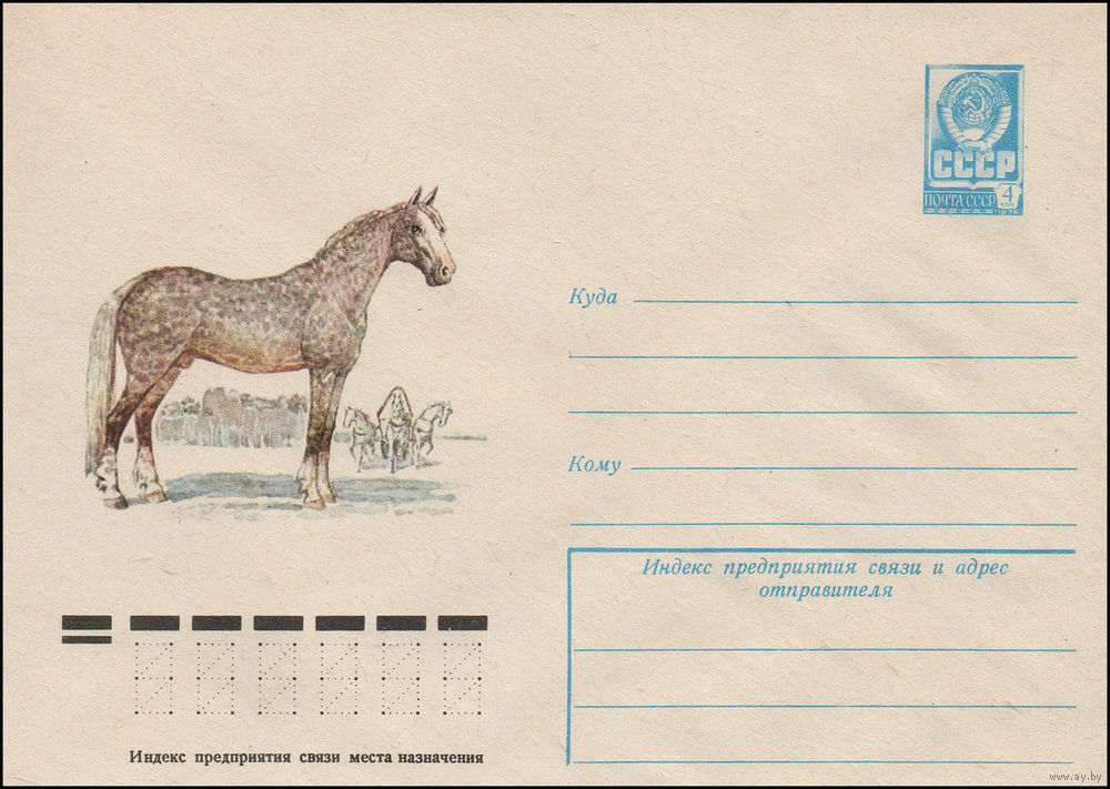 Художественный маркированный конверт СССР N 12458 (21.11.1977) Лошадь орловской рысистой породы