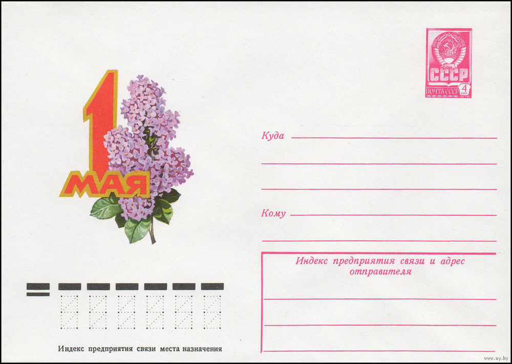 Художественный маркированный конверт СССР N 12478 (02.12.1977) 1 Мая