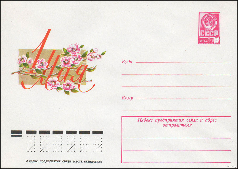 Художественный маркированный конверт СССР N 12497 (06.12.1977) 1 Мая