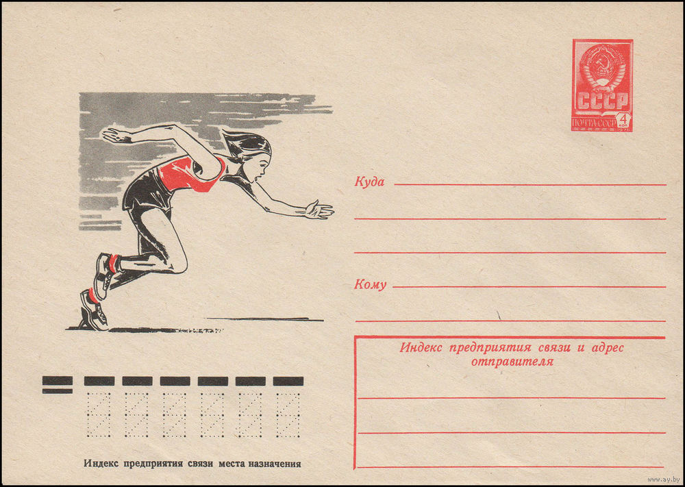 Художественный маркированный конверт СССР N 12498 (06.12.1977) Рисунок старта спортсменки при спринтерском беге