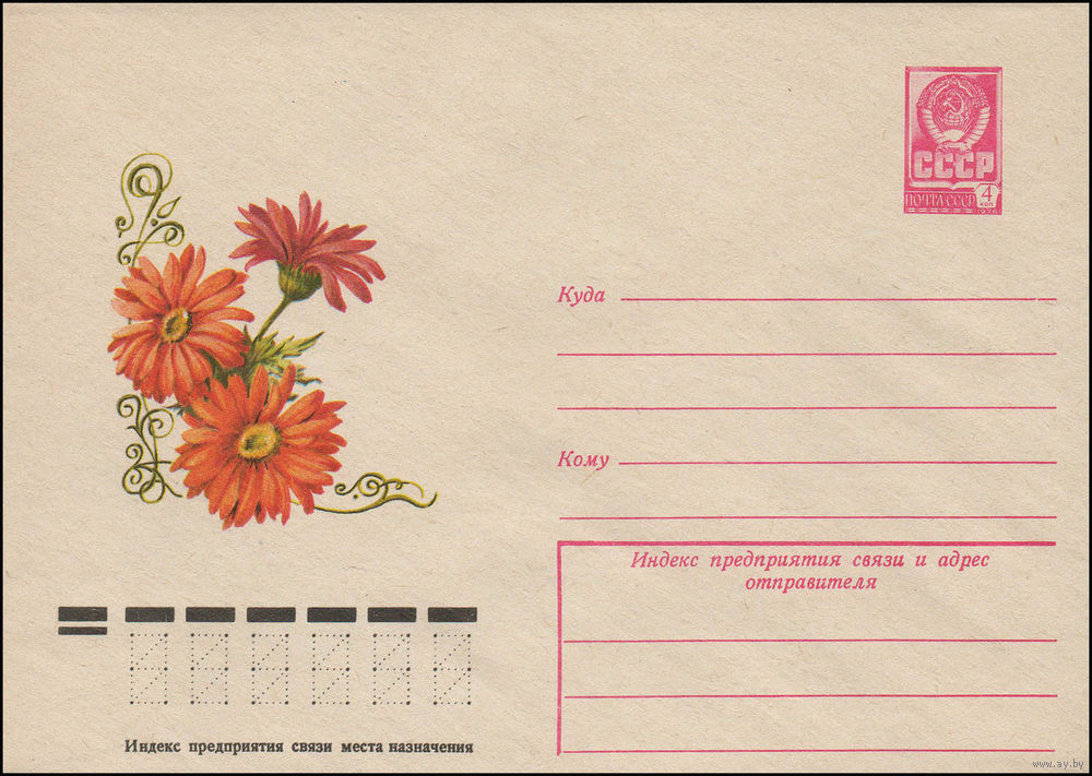 Художественный маркированный конверт СССР N 12532 (20.12.1977) Гербера