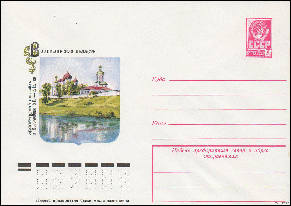 Художественный маркированный конверт СССР N 12619 (25.01.1978) Владимирская область Архитектурный ансамбль в Боголюбове XII-XIX вв.