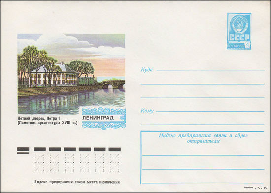 Художественный маркированный конверт СССР N 12662 (14.02.1978) Ленинград Летний дворец Петра I (Памятник архитектуры XVIII в.)