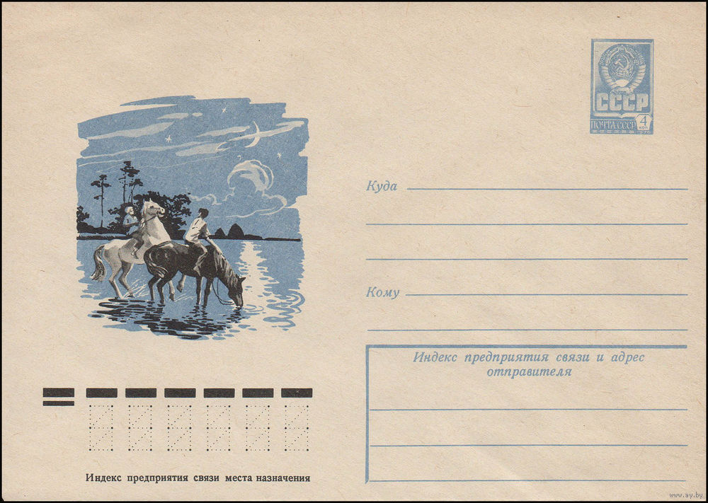 Художественный маркированный конверт СССР N 12847 (26.05.1978) Пейзаж с лошадьми на водопое