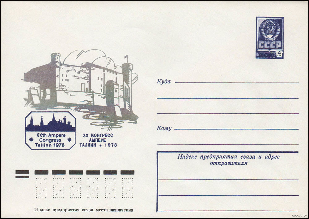 Художественный маркированный конверт СССР N 12856 (31.05.1978) XX конгресс Ампере Таллин 1978