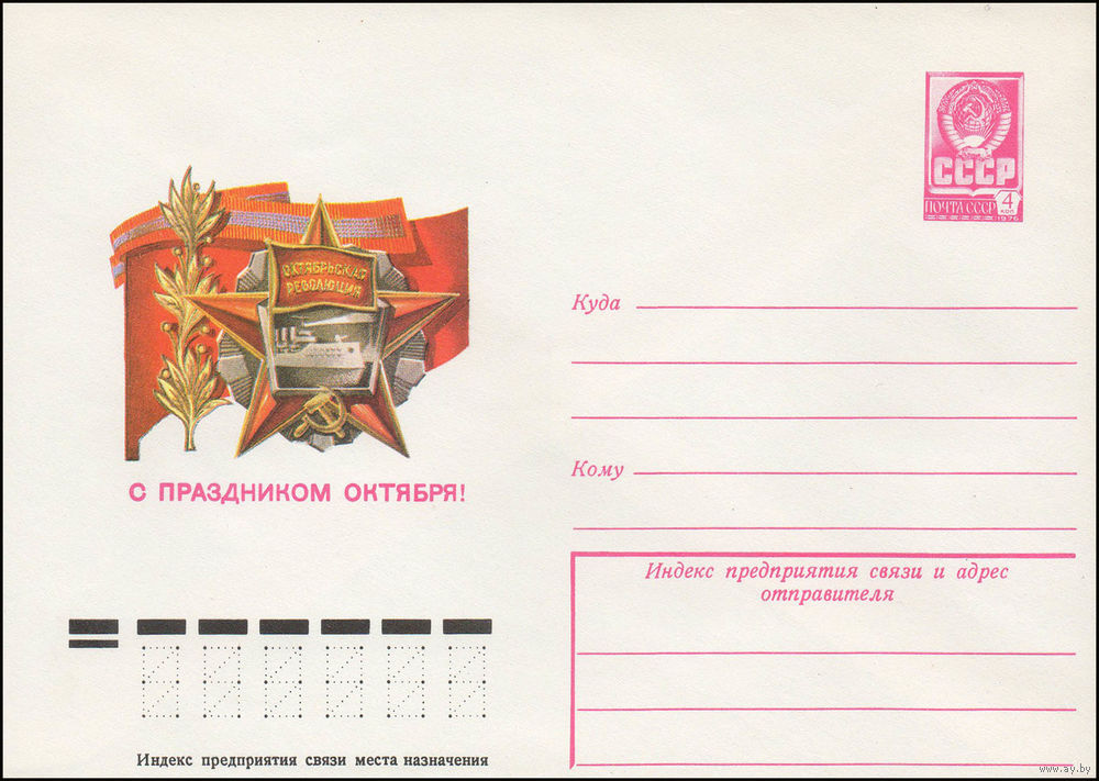 Художественный маркированный конверт СССР N 12870 (06.06.1978) С праздником Октября!