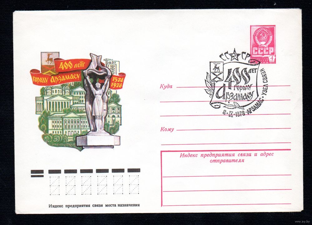 Художественный маркированный конверт СССР N 12873 со спецгашением (08.06.1978) 400 лет городу Арзамасу 1578-1978