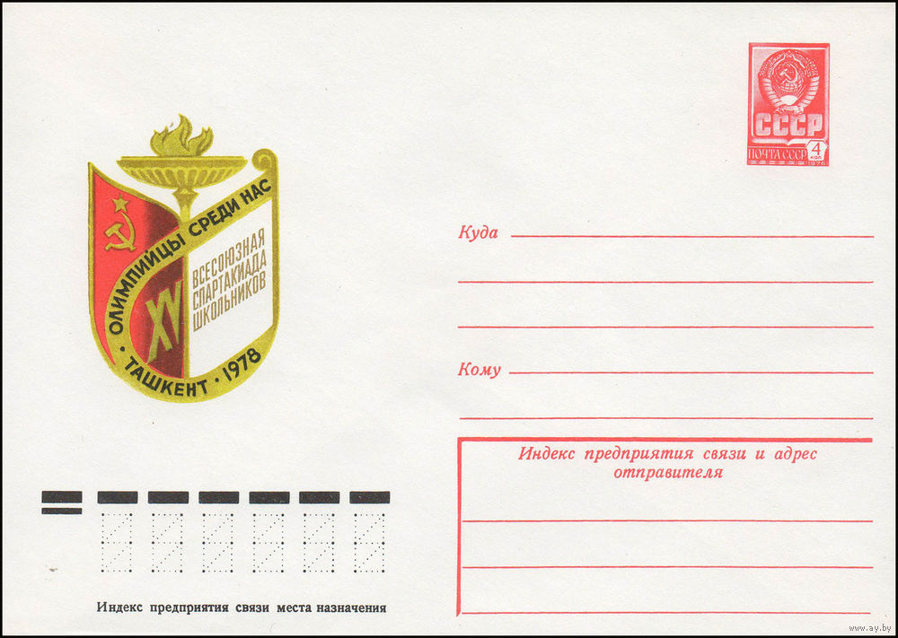 Художественный маркированный конверт СССР N 12917 (05.07.1978) XV Всесоюзная спартакиада школьников Олимпийцы среди нас Ташкент 1978
