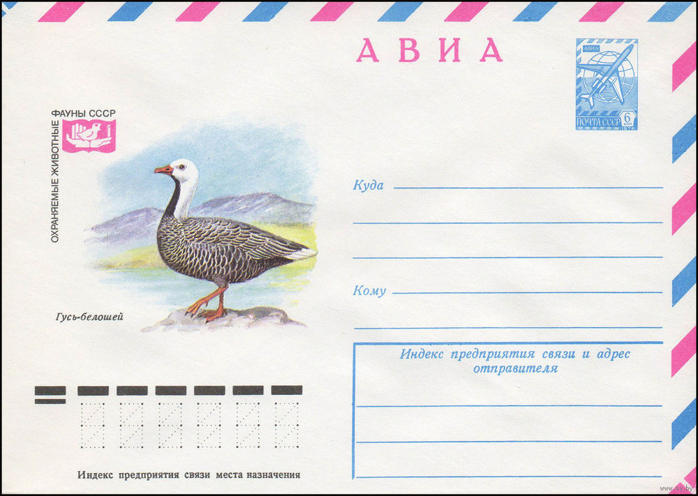 Художественный маркированный конверт СССР N 12927 (05.07.1978) АВИА Охраняемые животные фауны СССР Гусь-белошей