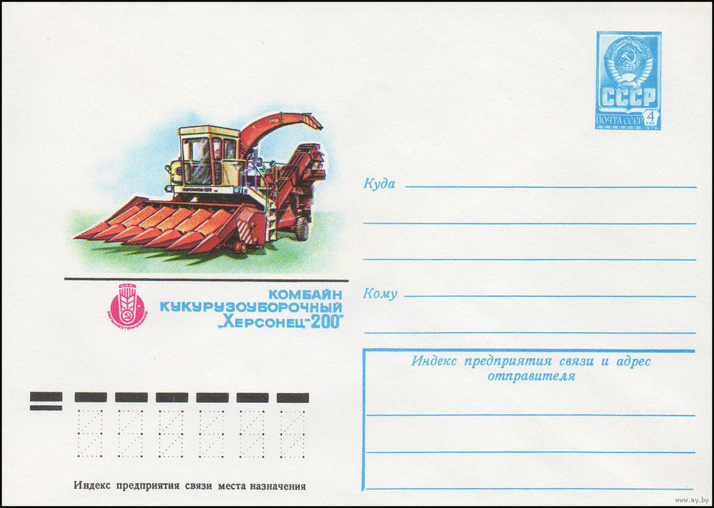Художественный маркированный конверт СССР N 13007 (08.08.1978) СССР Сельхозтехника-78 Комбайн кукурузоуборочный "Херсонец-200"