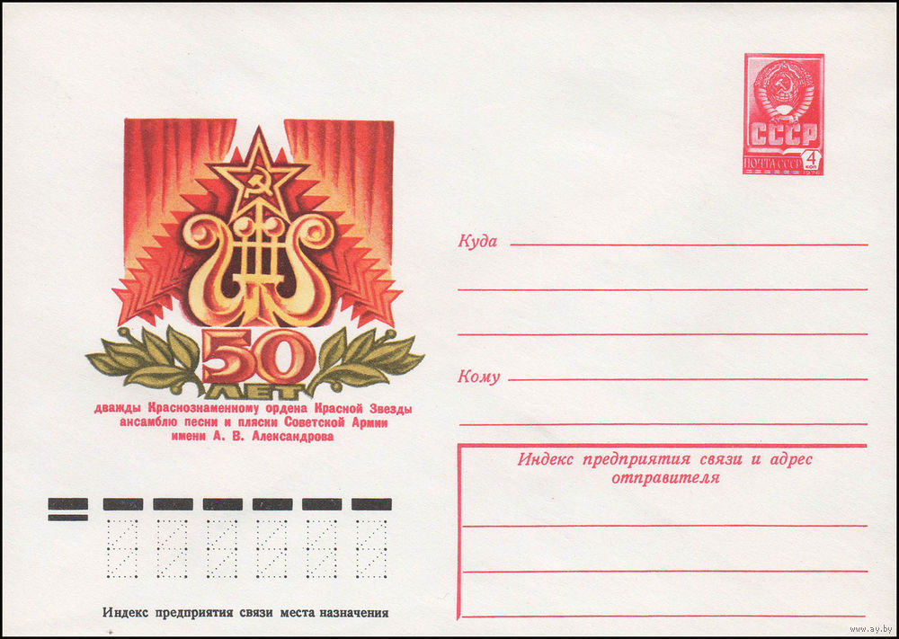 Художественный маркированный конверт СССР N 13008 (08.08.1978) 50 лет дважды Краснознаменному ордена Красной Звезды ансамблю песни и пляски Советской Армии имени А.В. Александрова