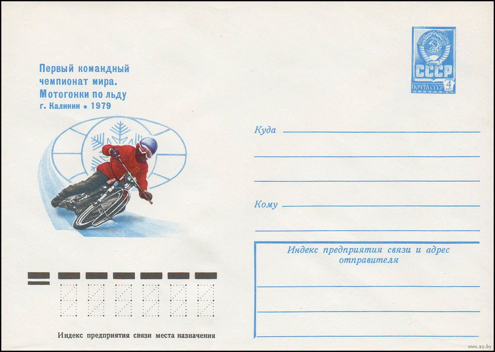 Художественный маркированный конверт СССР N 13218 (18.12.1978) Первый командный чемпионат мира. Мотогонки по льду г. Калинин 1979