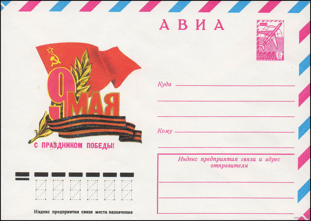 Художественный маркированный конверт СССР N 13233 (19.12.1978) АВИА 9 Мая С праздником Победы!