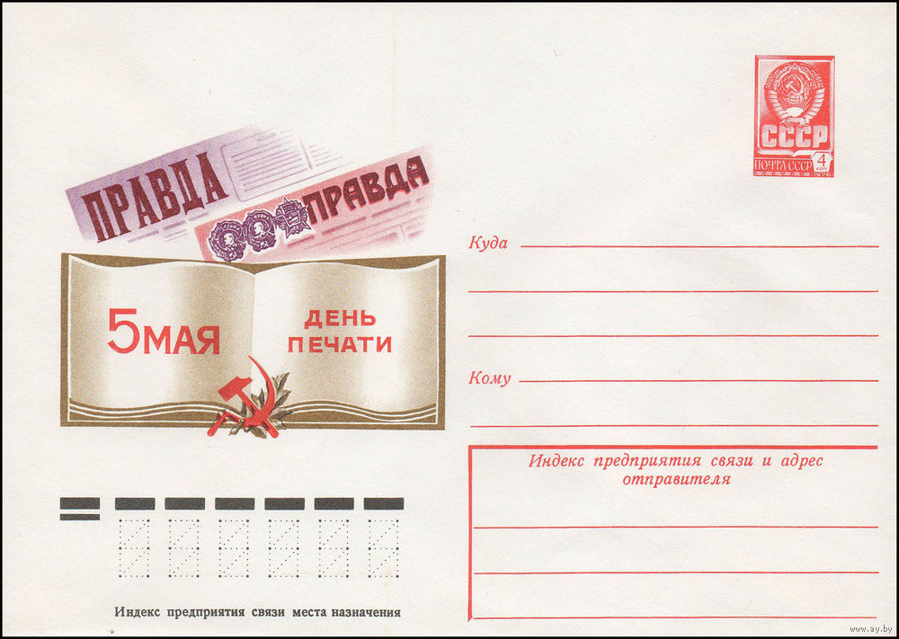Художественный маркированный конверт СССР N 13294 (24.01.1979) 5 мая День печати