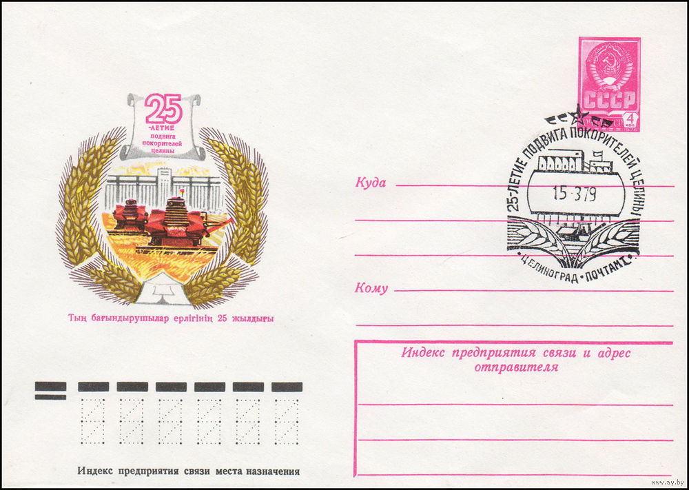 Художественный маркированный конверт СССР N 13364 (01.03.1979) 25-летие подвига покорителей целины