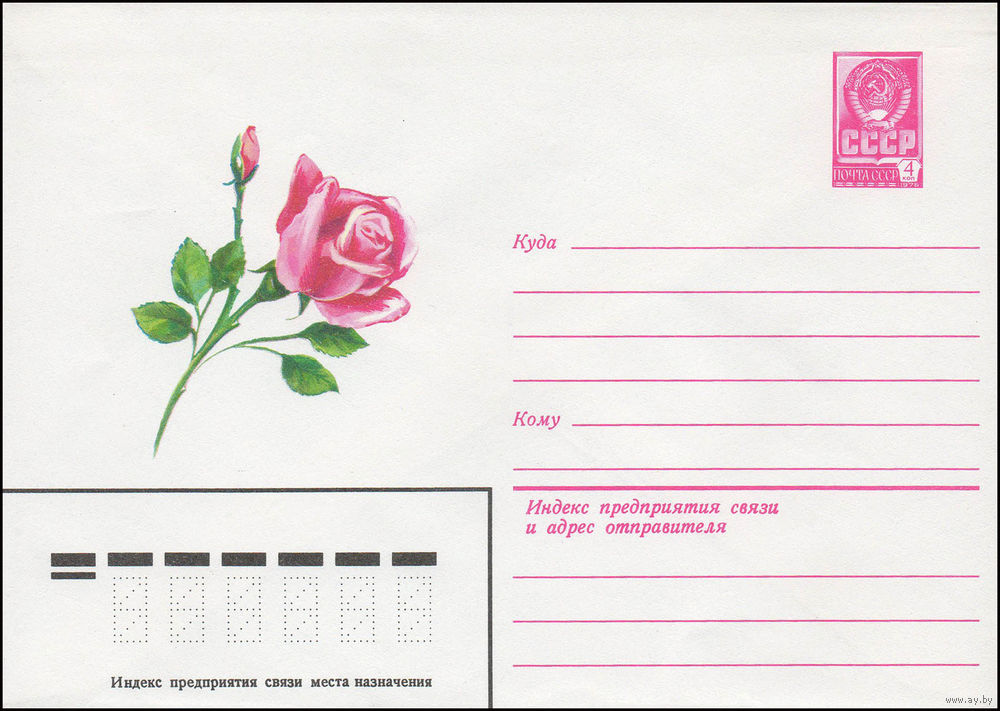 Художественный маркированный конверт СССР N 13372 (05.03.1979) Рисунок красной розы