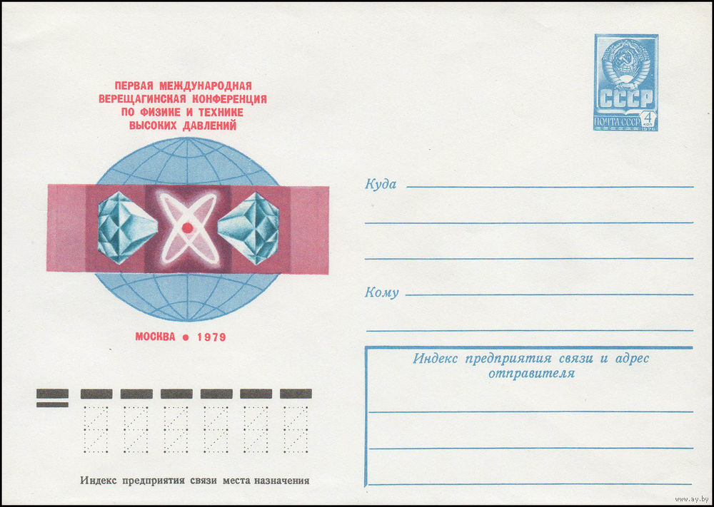 Художественный маркированный конверт СССР N 13393 (20.03.1979) Первая Международная Верещагинская конференция по физике и технике высоких давлений Москва 1979