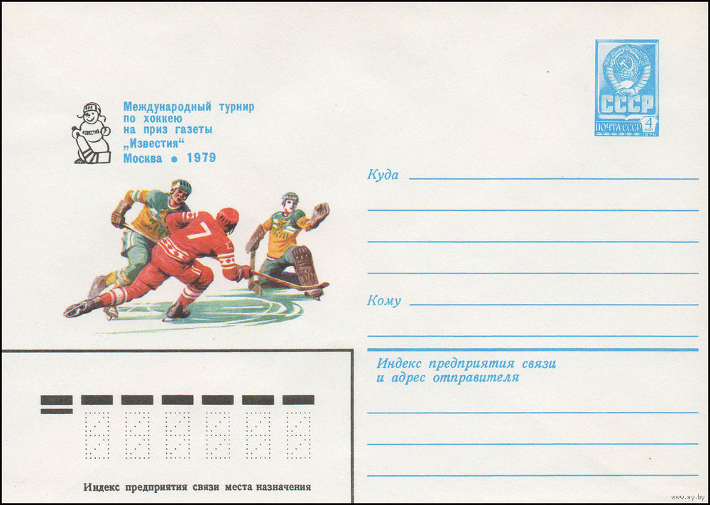 Художественный маркированный конверт СССР N 13394 (20.03.1979) Международный турнир по хоккею на приз газеты "Известия" Москва 1979
