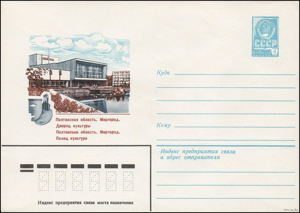 Художественный маркированный конверт СССР N 13480 (03.05.1979) Полтавская область. Миргород. Дворец культуры