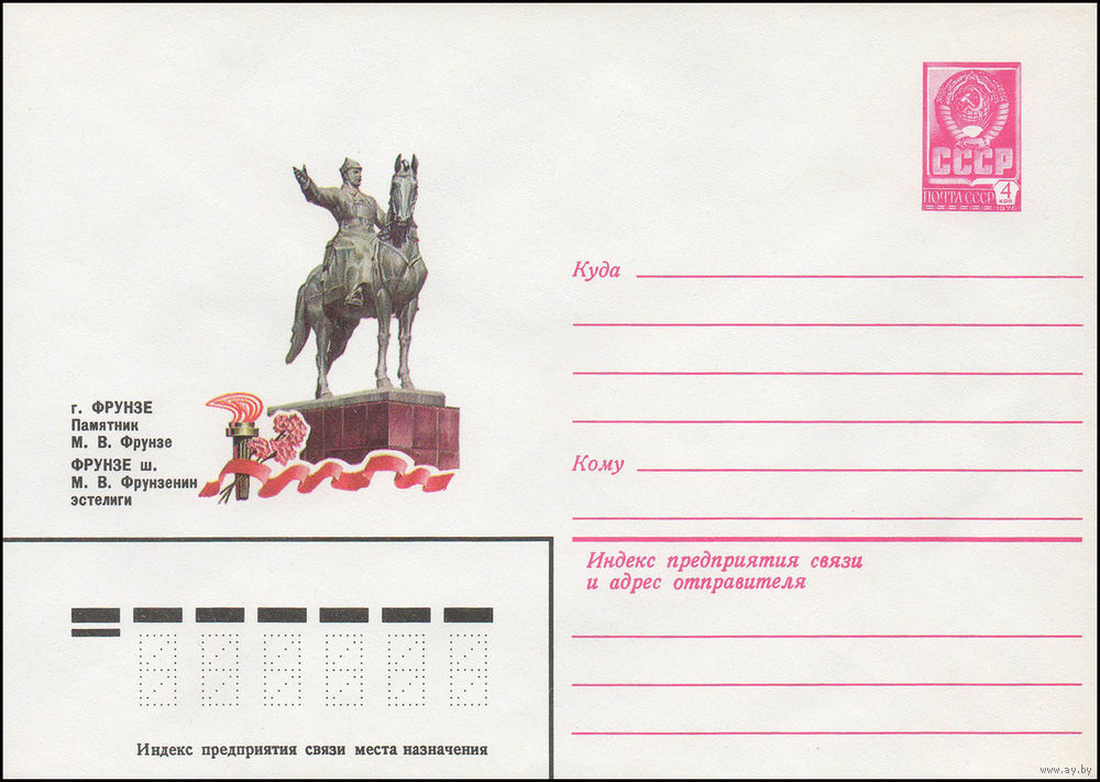 Художественный маркированный конверт СССР N 13536 (25.05.1979) Фрунзе. Памятник М.В. Фрунзе