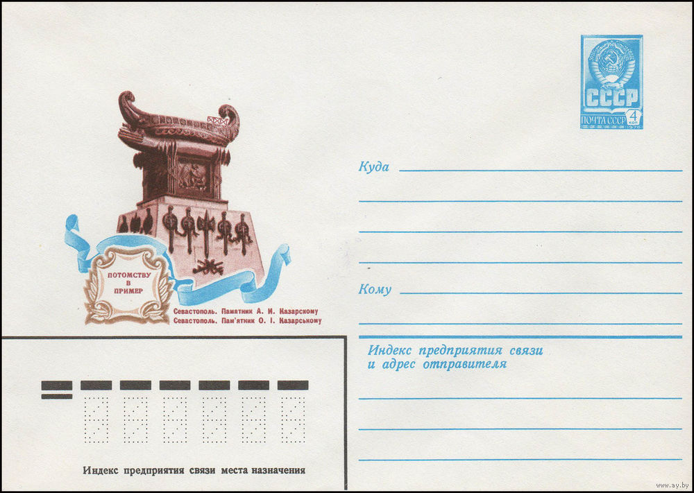 Художественный маркированный конверт СССР N 13542 (29.05.1979) Потомству в пример Севастополь. Памятник А.И. Казарскому