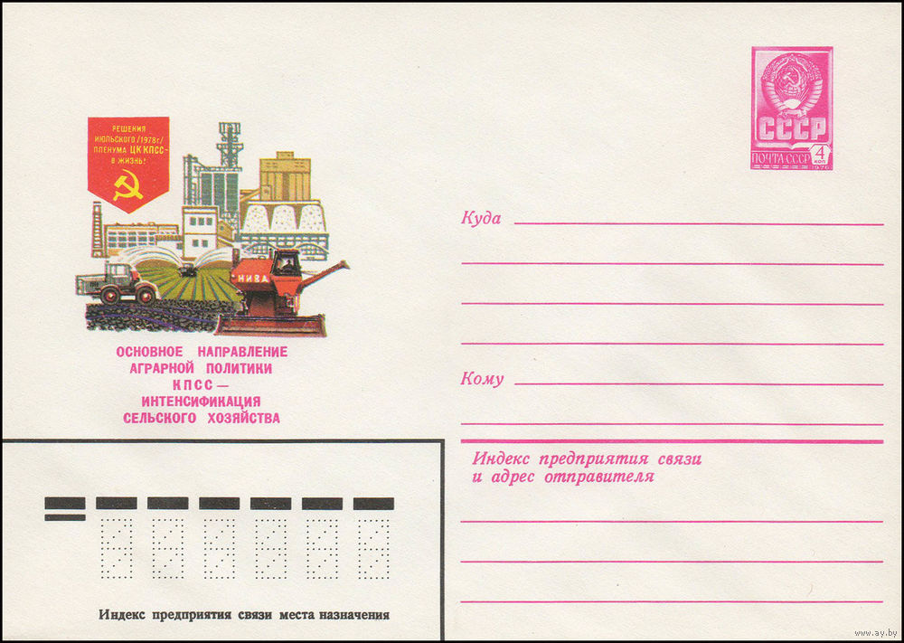 Художественный маркированный конверт СССР N 13560 (05.06.1979) Решения июльского /1978 г./ Пленума ЦК КПСС - в жизнь! Основное направление аграрной политики КПСС - интенсификация сельского хозяйства