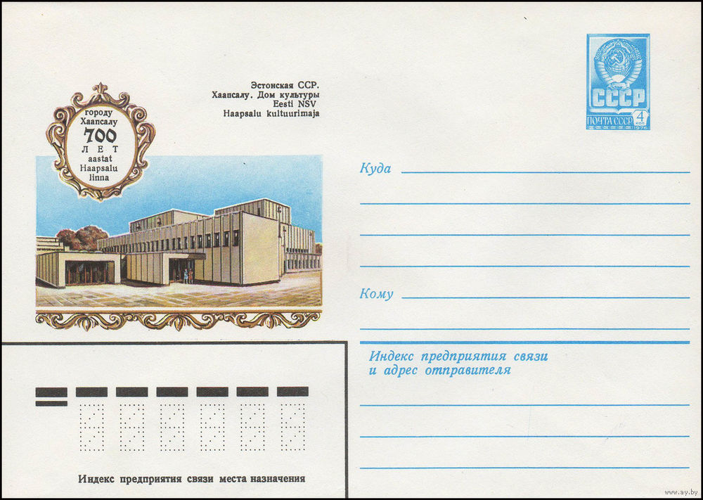Художественный маркированный конверт СССР N 13578 (13.06.1979) Городу Хаапсалу 700 лет Эстонская ССР. Хаапсалу. Дом культуры