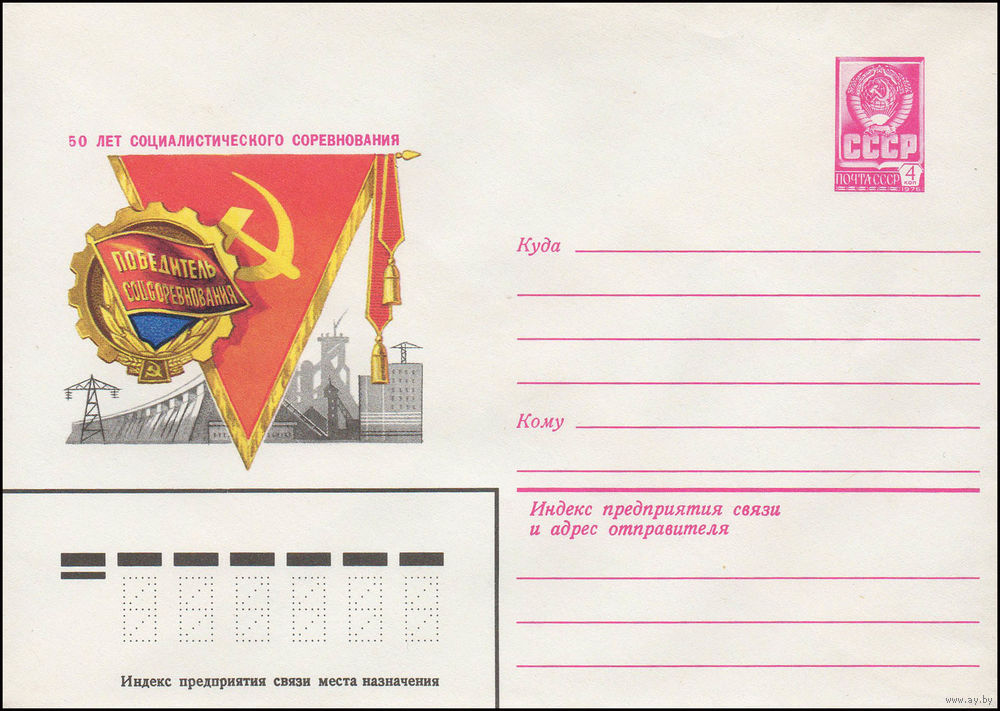 Художественный маркированный конверт СССР N 13579 (13.06.1979) 50 лет социалистического соревнования